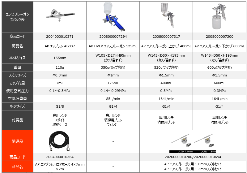 「2008000007317 AP エアスプレーガン 上カップ 400mL」用のノズルセット