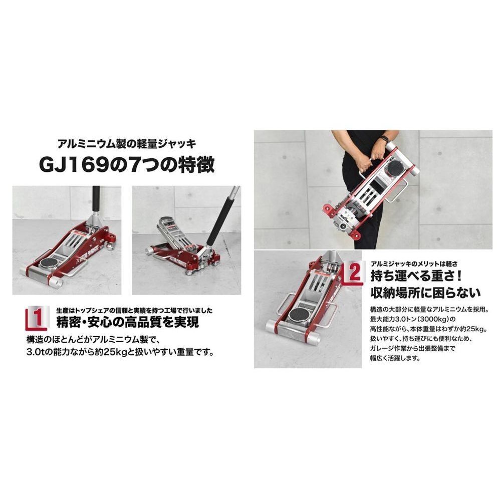 アルミニウム製の3.0t軽量ガレージジャッキです。