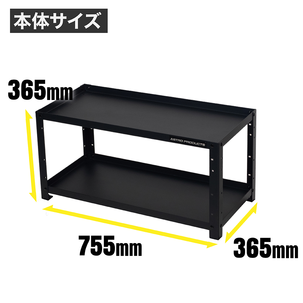 サイズ | ・本体サイズ:W755×D365×H365mm ・重量:7kg ・トレー内寸:W740×D350×H30mm×2 ・トレー耐荷重:25kg ・レッグ耐荷重:100kg(4本) |
