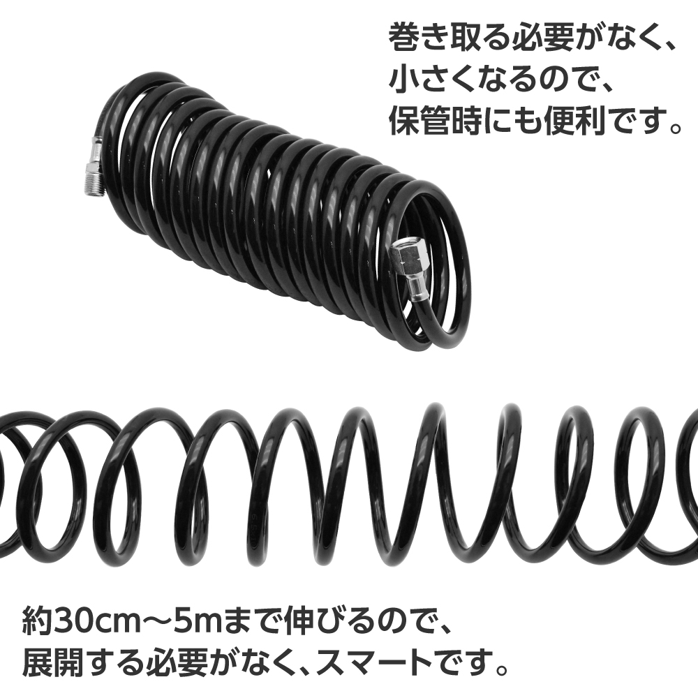 作業時に広がりにくい、5mのスパイラルエアホースです。