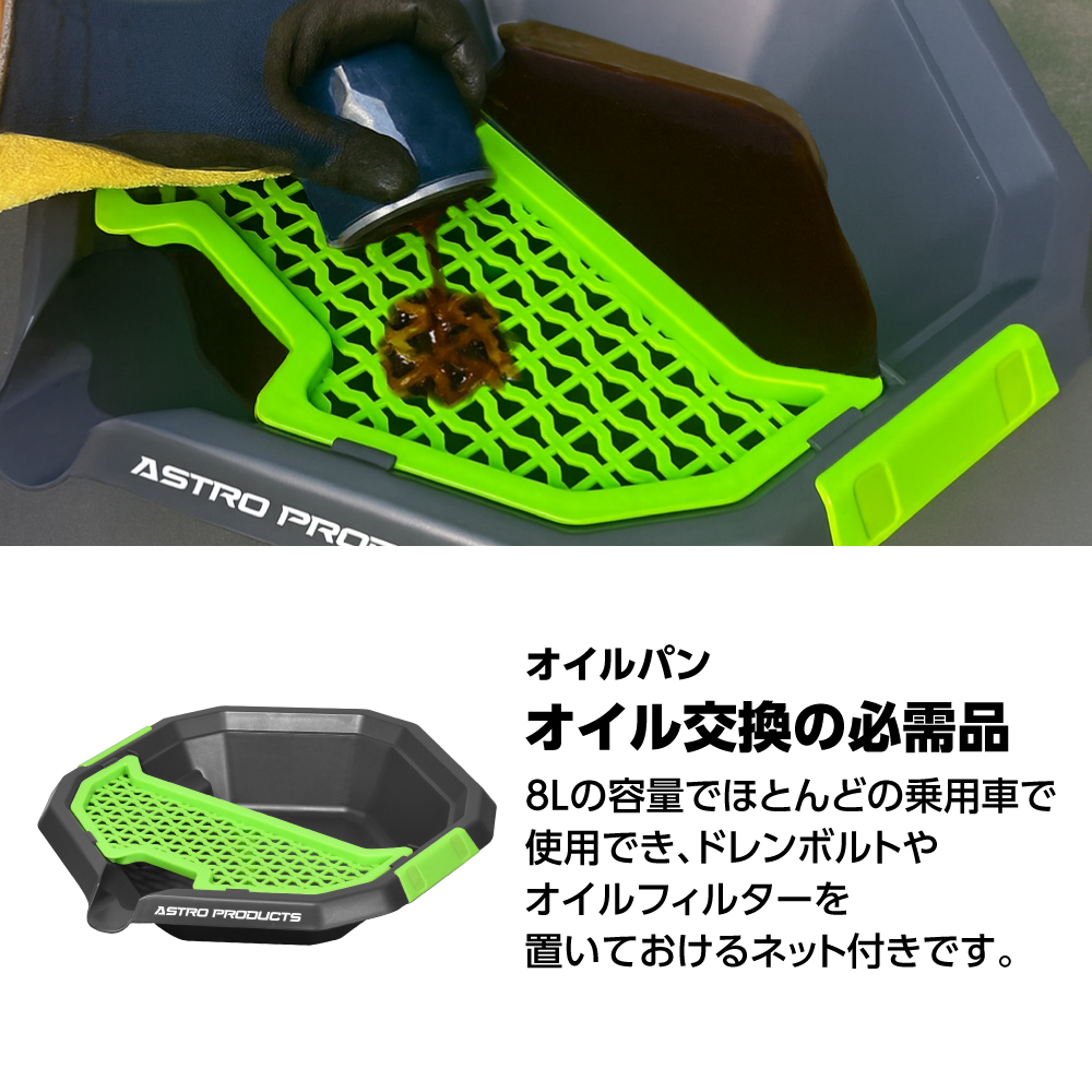 オイルパンは8Lの容量でほとんどの乗用車で使用でき、ドレンボルトやオイル