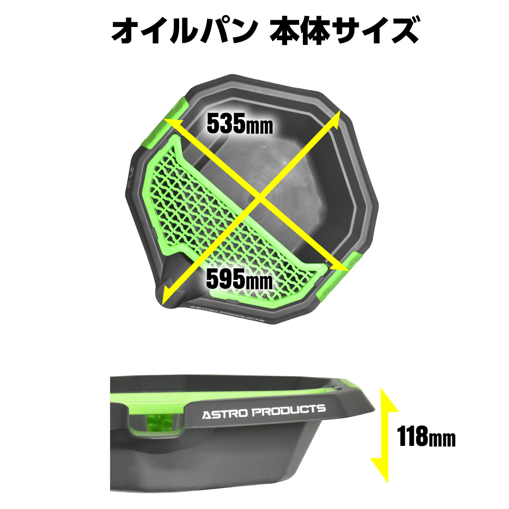 | 注意事項 | ※オイルパンは、簡易的な廃油受けです。液体の保管には使用 しないでください。 ※ガソリンやシンナー、有機溶剤などの液体は絶対に入れない でください。 ※本来の目的、用途以外には使用しないでください。 |