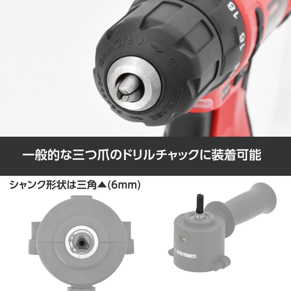 ドリルドライバーに取り付けるだけで、回転をダブルアクションに変換できるア