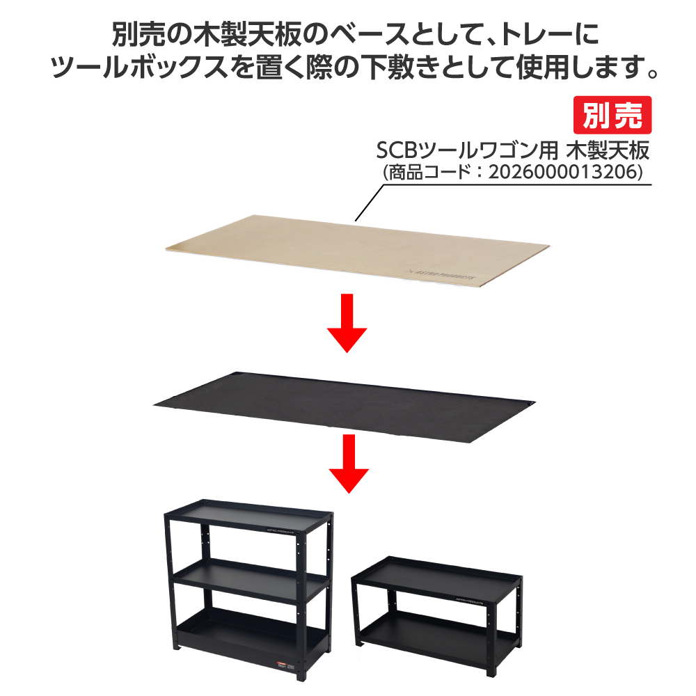 別売の木製天板のベースとして、トレーにツールボックスを置く際の下敷きとし