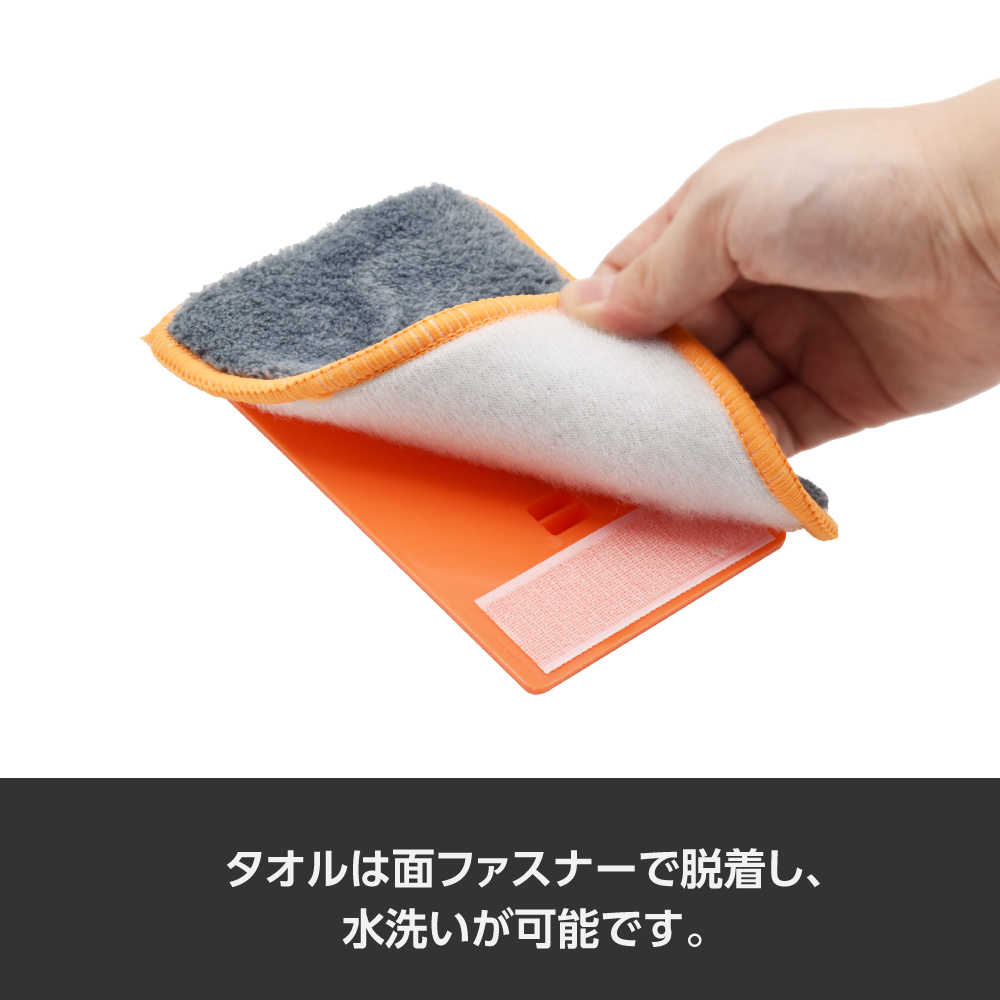 タオルは面ファスナーで脱着し、水洗いが可能です。