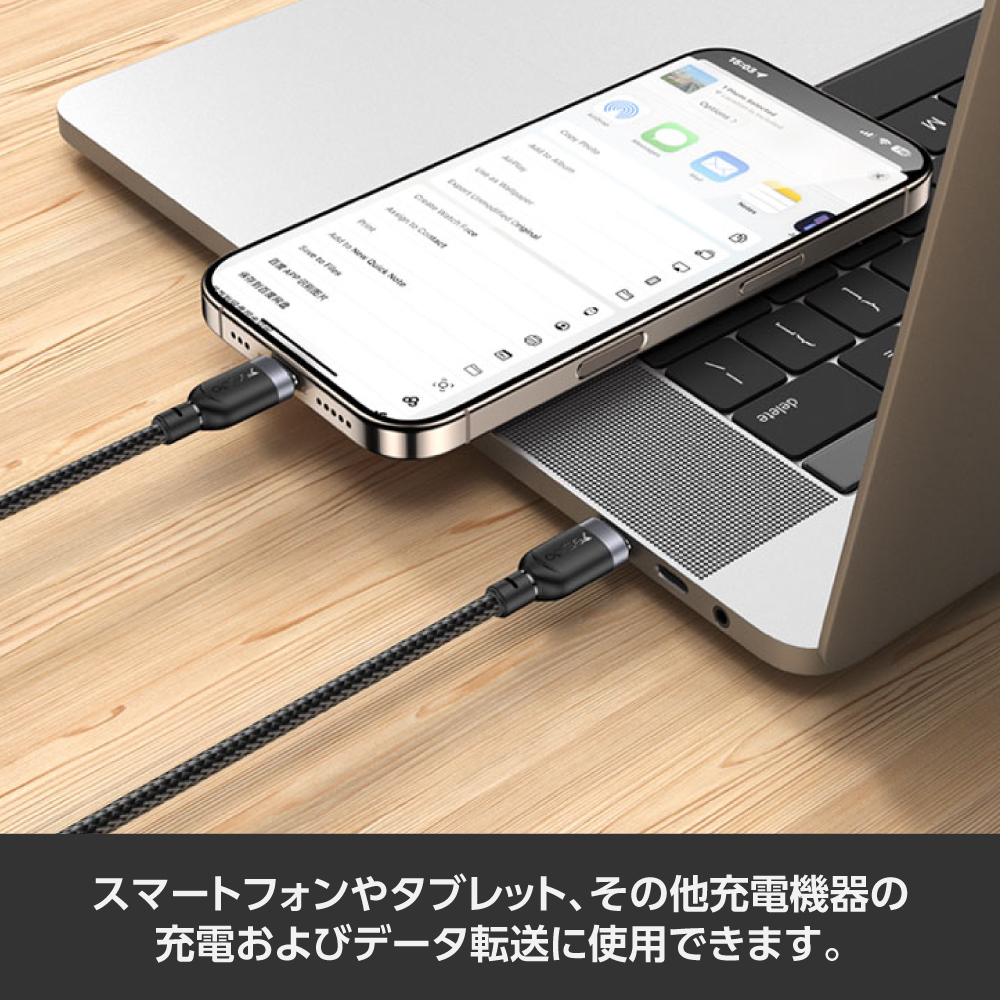 スマートフォンやタブレット、その他充電機器の充電およびデータ転送に使用で
