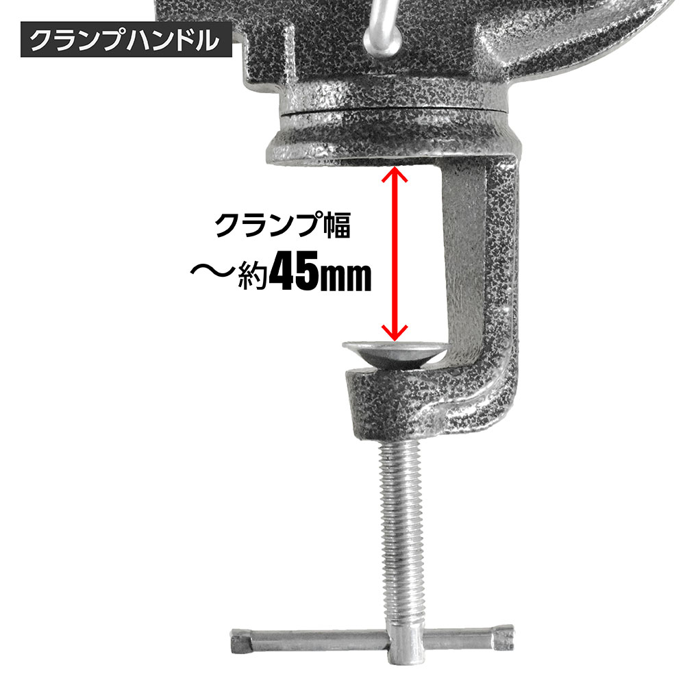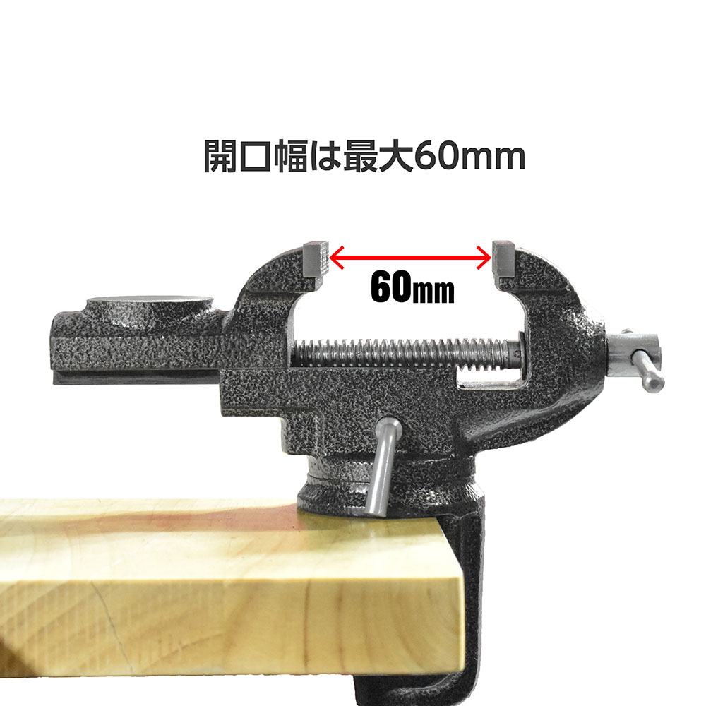 | サイズ | ・本体サイズ:L160×W70×H98mm (ハンドル、クランプ含まず) ・重量:2.4kg ・開口幅:60mm ・口幅:60mm ・口深さ:35mm ・アンビルサイズ:47×35mm |