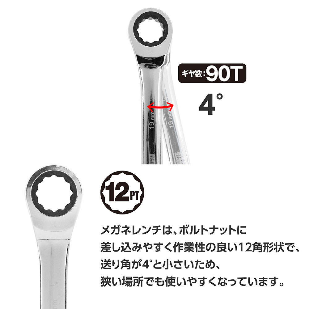 90Tのギヤを搭載した、コンビラチェットレンチのセットです。