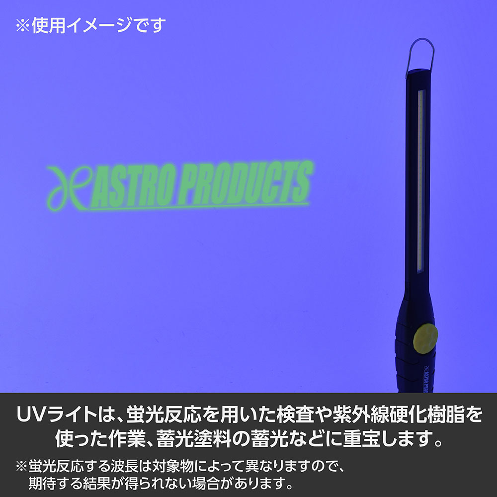 UVライトは、蛍光反応を用いた検査や紫外線硬化樹脂を使った作業、蓄光塗料の