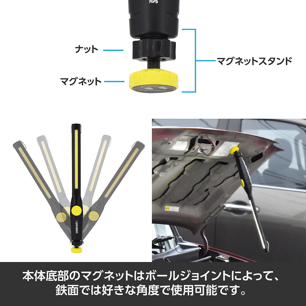マグネットスタンドは、ボールジョイント式なので、鉄面に付け、任意の角度で
