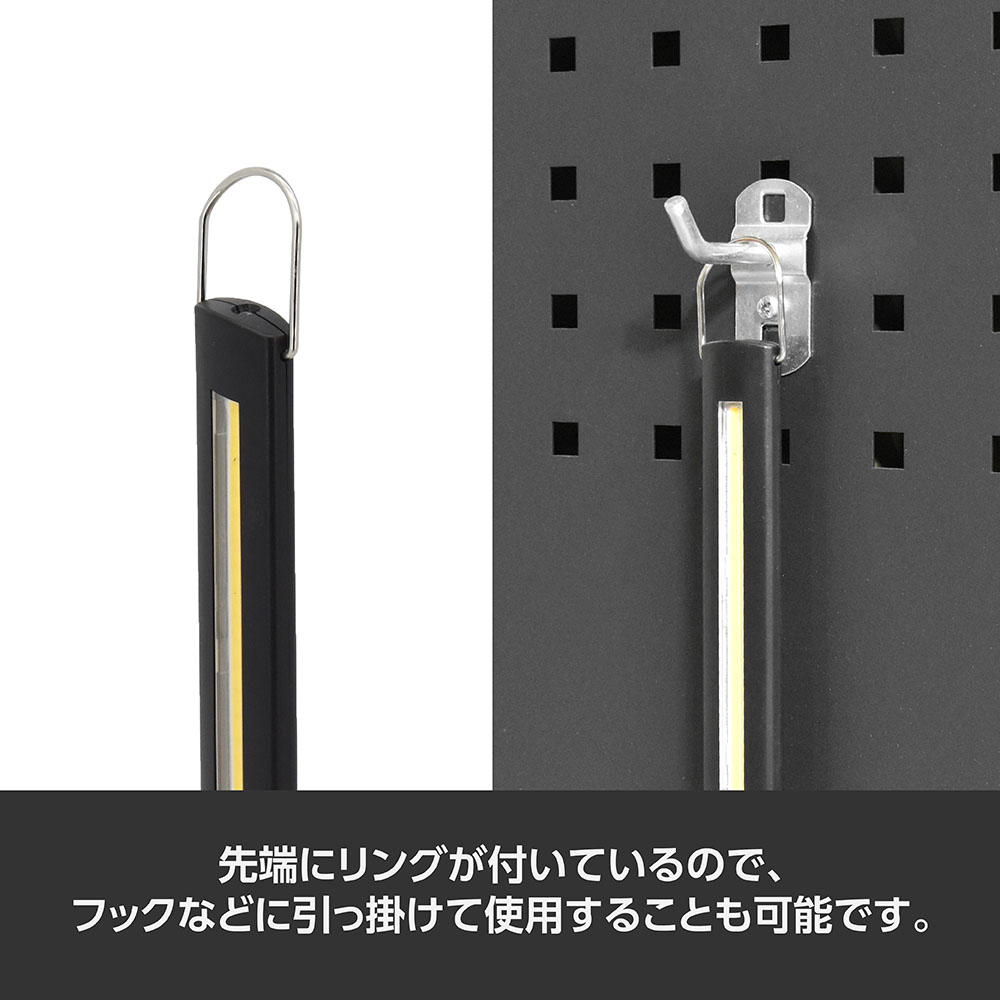 先端にリングが付いているので、フックなどに掛けて使用することも可能です。